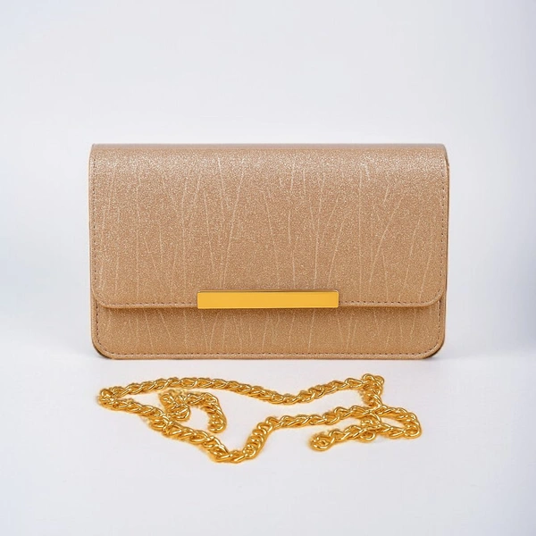 glittery golden sling bag, a must-have accessory for every fashion-forward woman. This elegant purse is designed with a sleek metallic finish and shimmering texture that perfectly complements your party, wedding, or festive outfit.